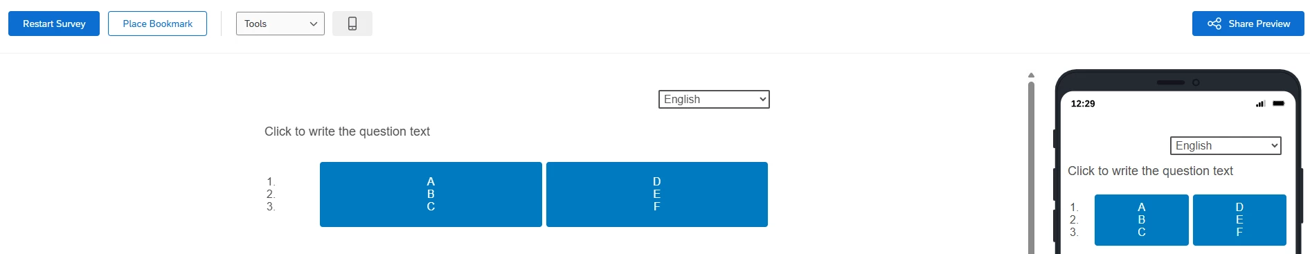 Im trying to make a mobile friendly multiple choice question where the question alternatives are side-by-side for alignment purposes.