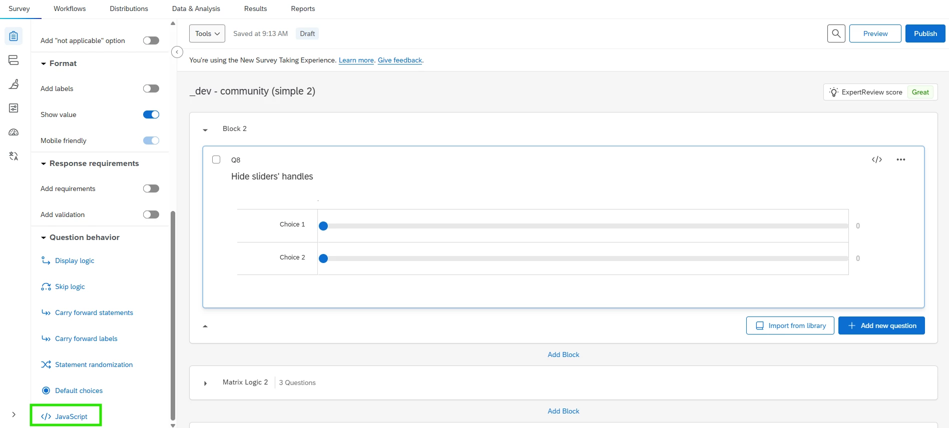 I’m concerned about the default behaviour, where the slider handle is initially anchored at $0. This requires participants to drag the handle across the scale, which may inadvertently introduce anchoring bias, participants might stay closer to $0 simply because of the starting position, rather than reflecting their true response.