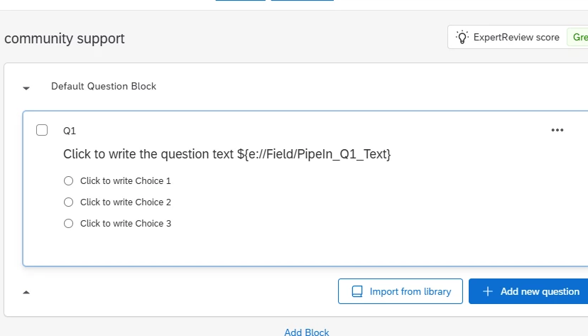 Since we're running multiple survey variations within the same survey and it is only two words in one questions, I'd prefer to implement this using CSS classes and JavaScript rather than Qualtrics' built-in logic, as this would be cleaner and more maintainable.
