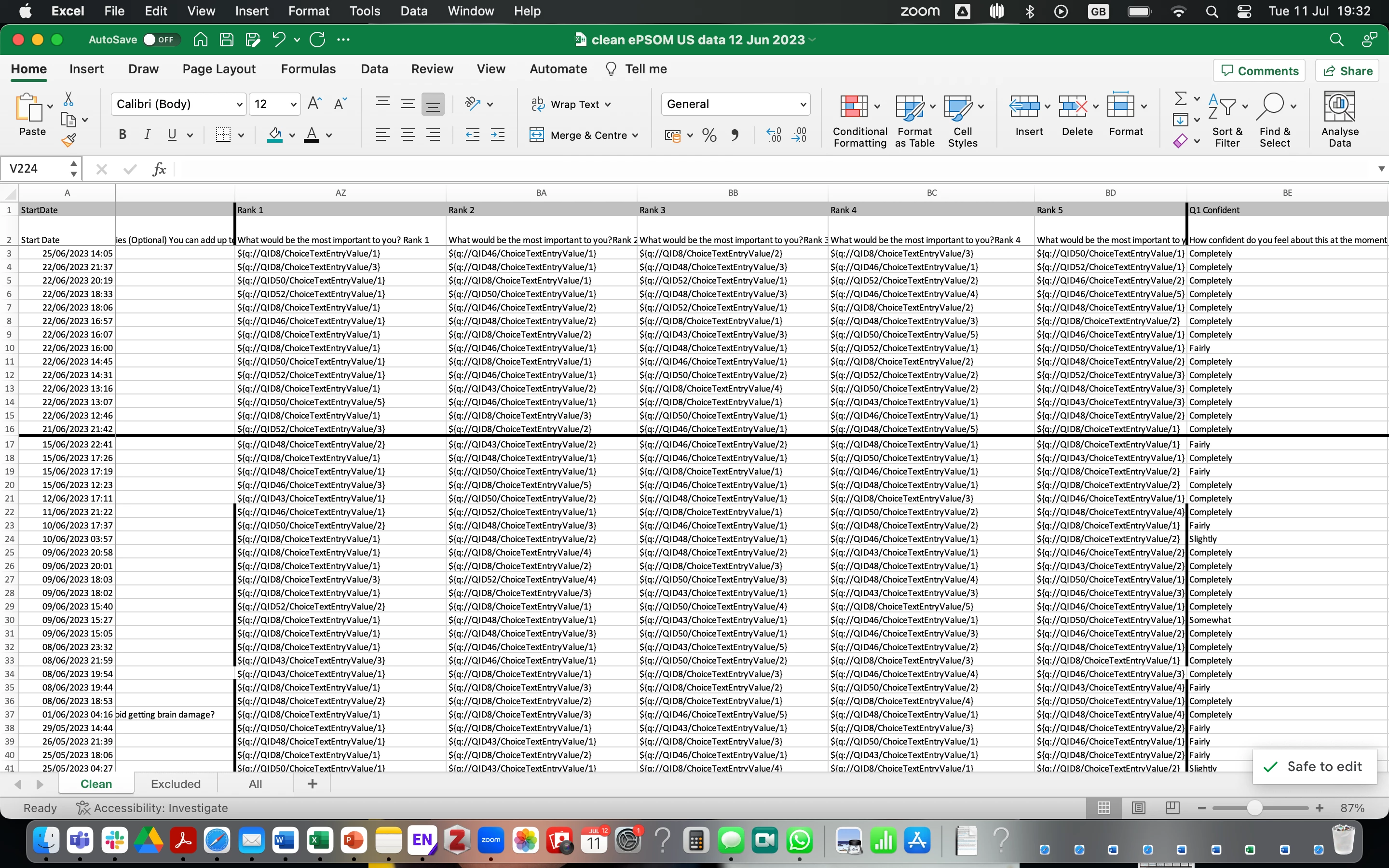 I hope this all makes sense! The survey itself is working well for our users, but we are finding it very difficult to analyze the answers. Instead of showing what the piped text is, it’s just showing the code (e.g. “${q://QID46/ChoiceTextEntryValue/1}”). Has anyone else done something similar, and if so how did you end up analyzing the answers? Were you able to pull the actual answers into the ranked questions when viewing the data or did you have to do this manually? Thanks in advance for any help.