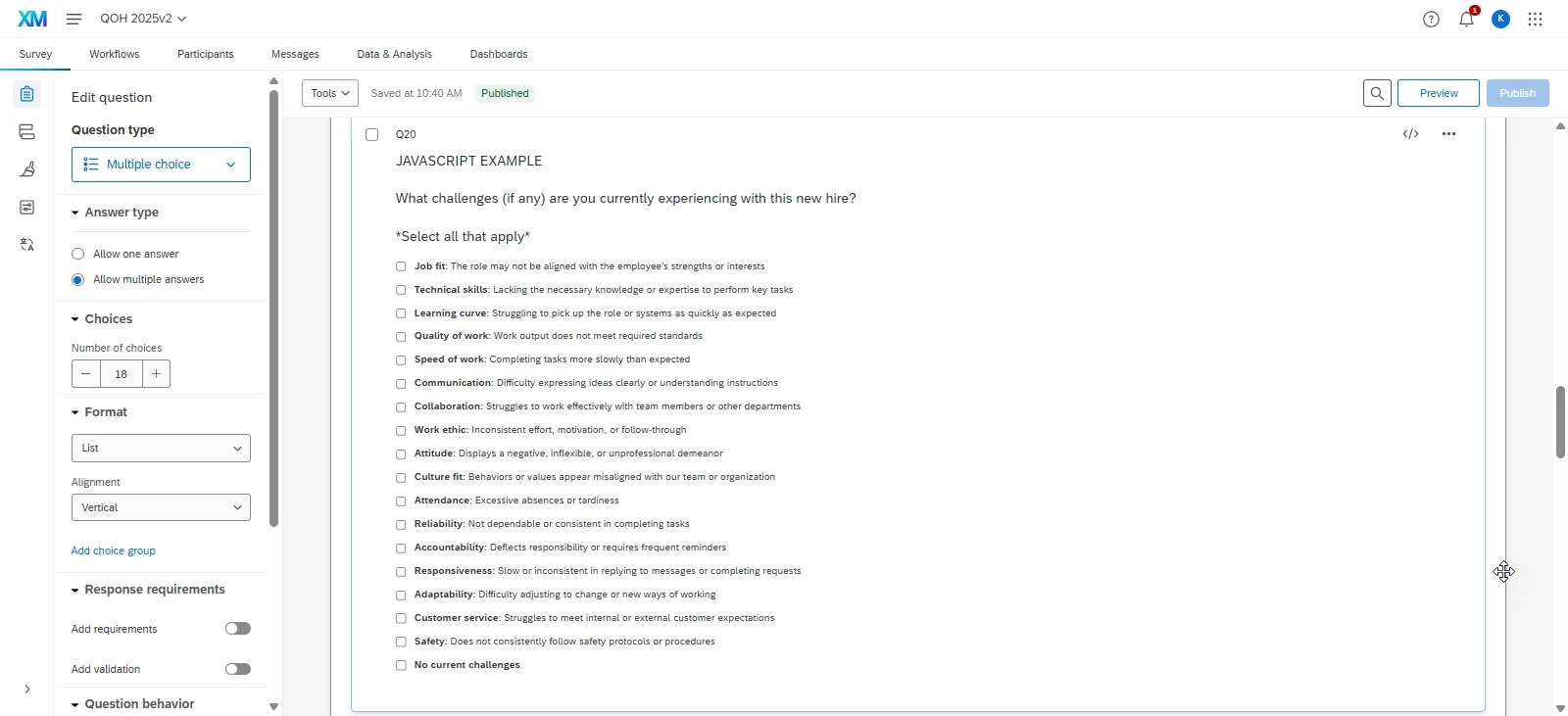 I have a Lifecycle survey where I want to have an overall “score” (raw number - not a %) calculated based on the items selected in the survey.