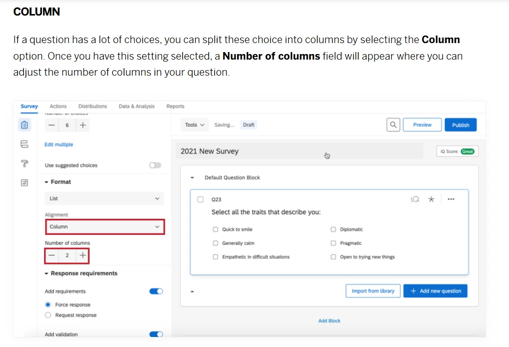 We’re working in the layout of a ‘Multiple choice’ question and we want to be sure it’s correctly displayed.