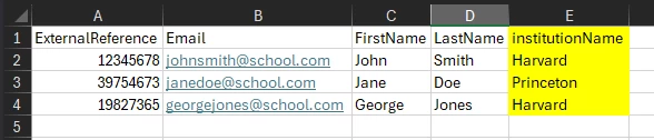- Add a new column to your population called institutionName, containing the correct values for each participant: