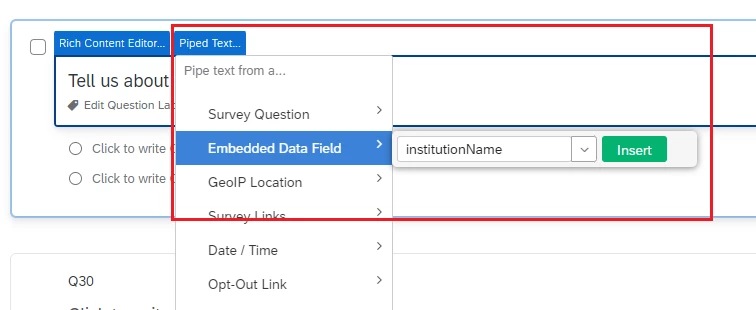 With that done, the survey should now present whatever you’ve specified for institutionName to each participant.