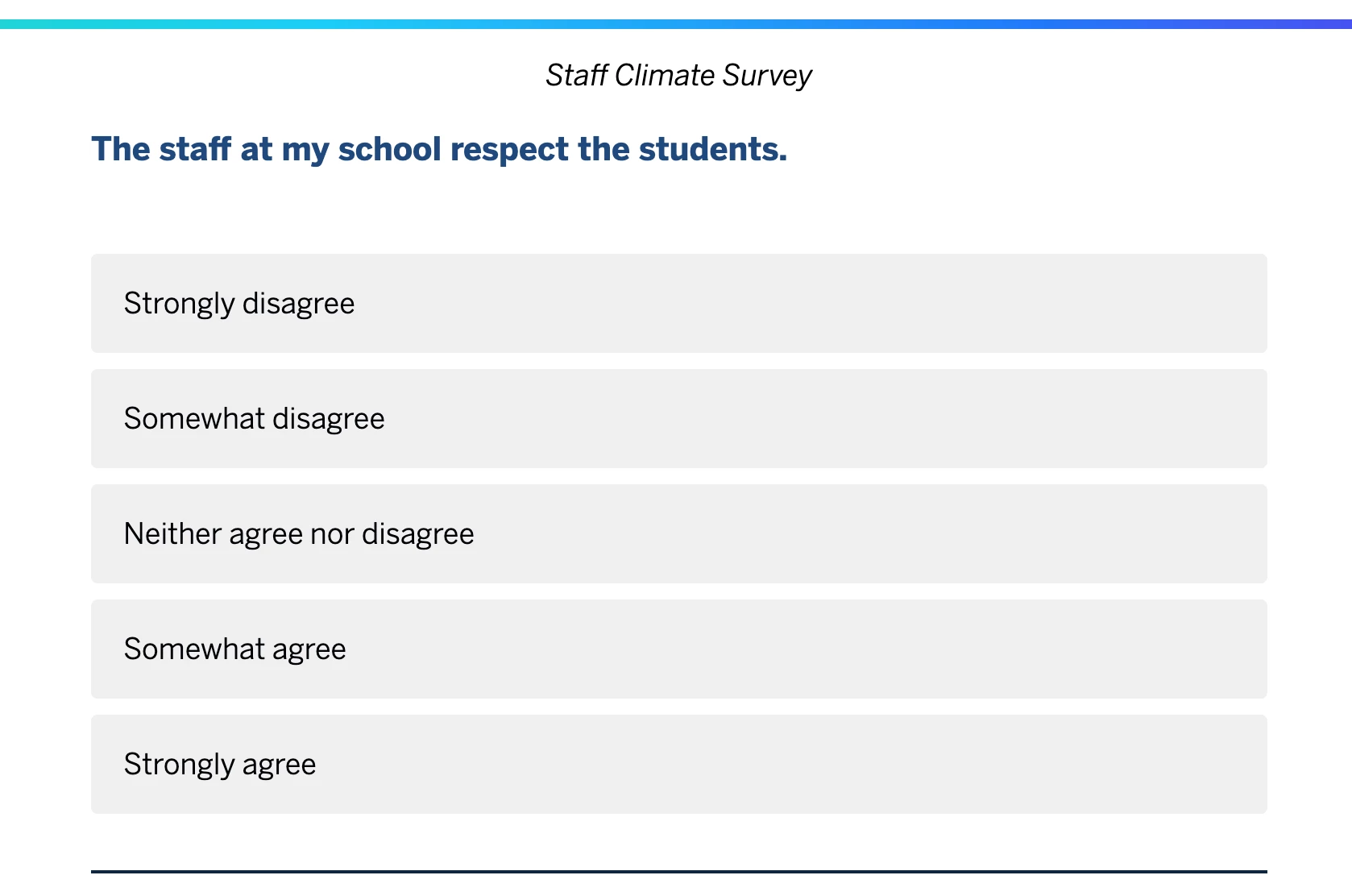 Here’s a quick QSF to help you assess the climate of your school and gather feedback from your teachers. This QSF consists of 25 questions evaluating relationships, family engagement, institutional environment, safety, teaching and learning & more.