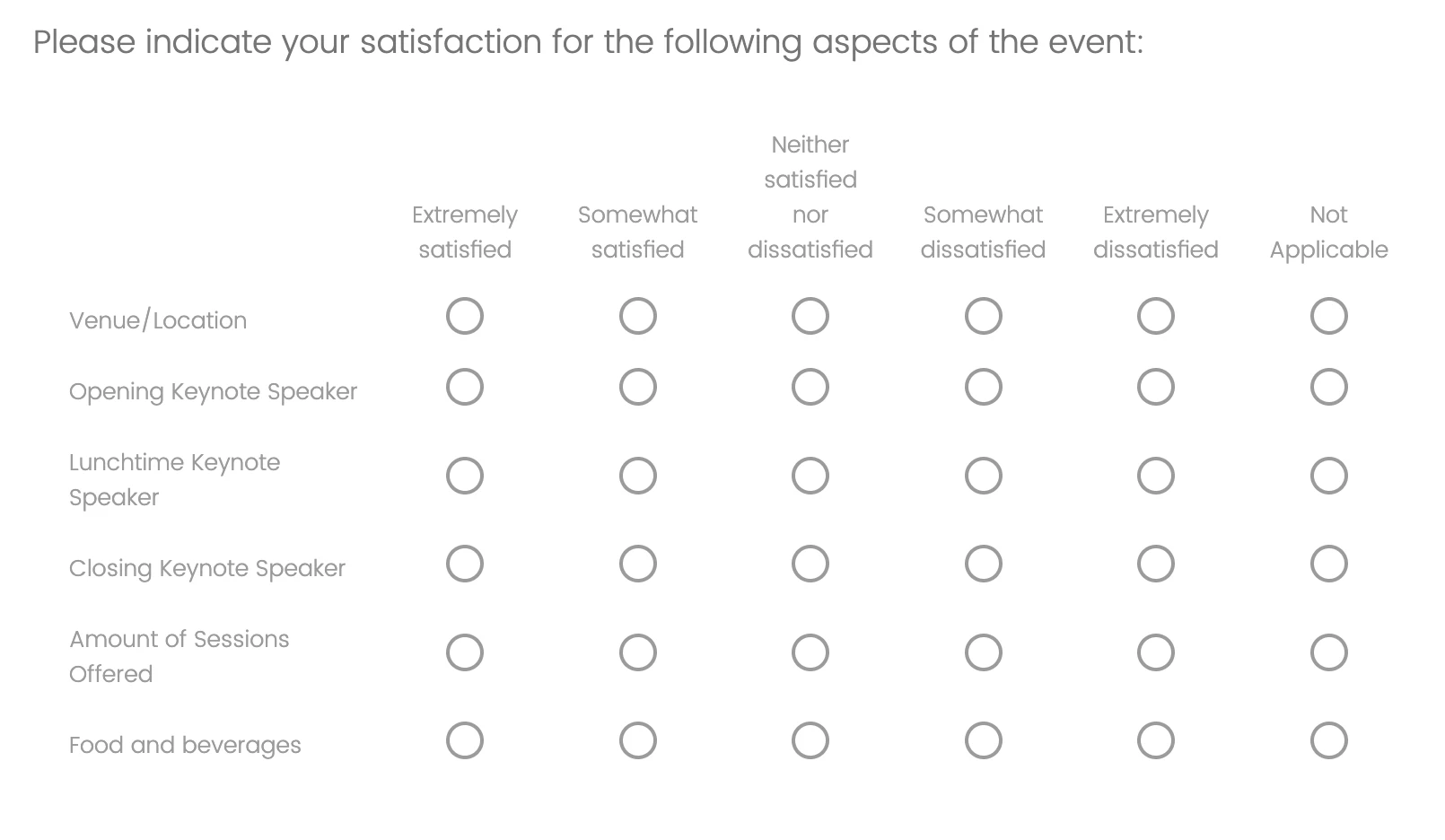 This survey was used to collect feedback from an annual PD conference that a group of educators in our area organize each year. The results are then used to help plan for next year's conference.