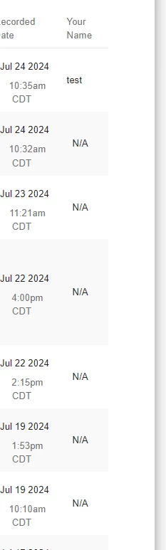 We setup a survey a month ago. Initially, it worked great. We have a “Your Name” required field that captured people’s names. We go back to look at the results because we want to gather more, and now all records in the “Your Name” column show “N/A”.