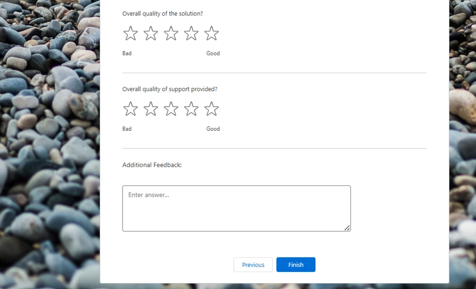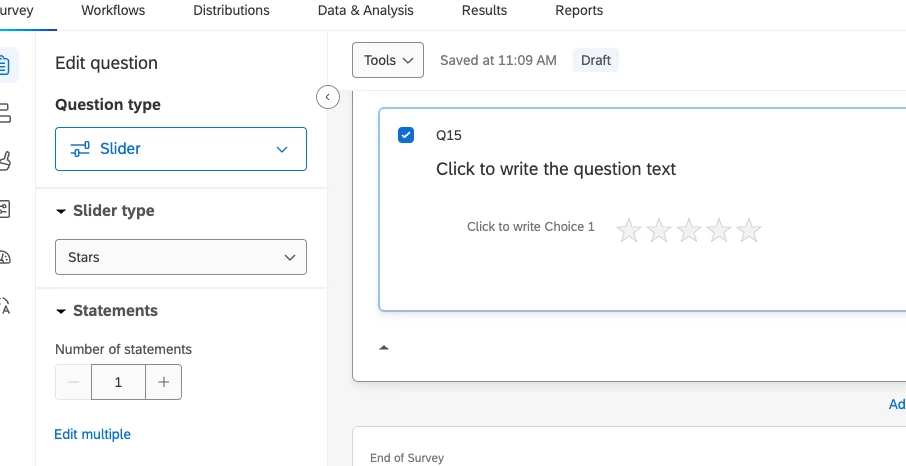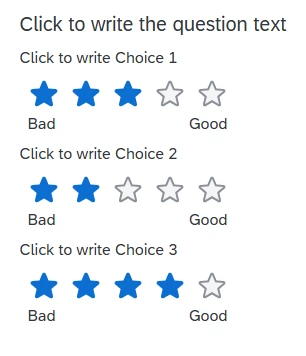 If you specifically want to use stars, another option is to use a multiple choice question type, display the choices horizontally, and use star symbols in the choice labels. You can also add text below the first and last options as needed. However, this approach may not be a perfect substitute.