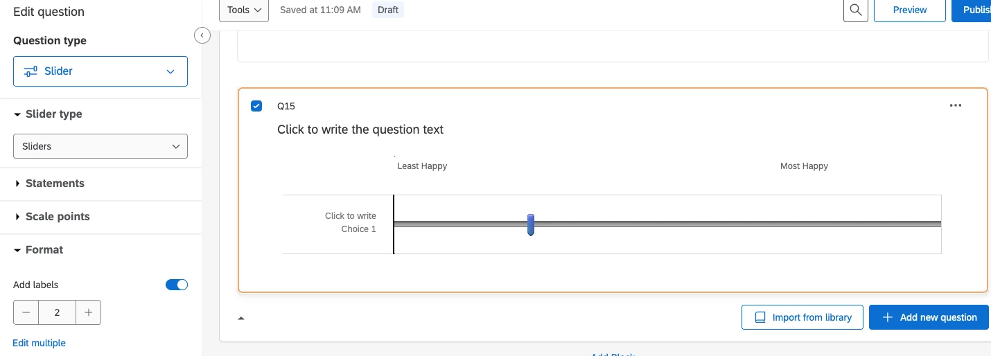 But if you change the “slider type” to slider then it allows you to add labels under the “format” section.