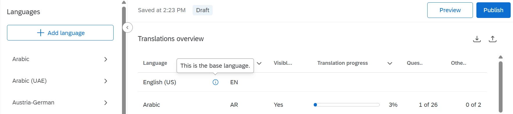 I’m trying to clearly understand how Qualtrics determines the base language for an email template/survey.