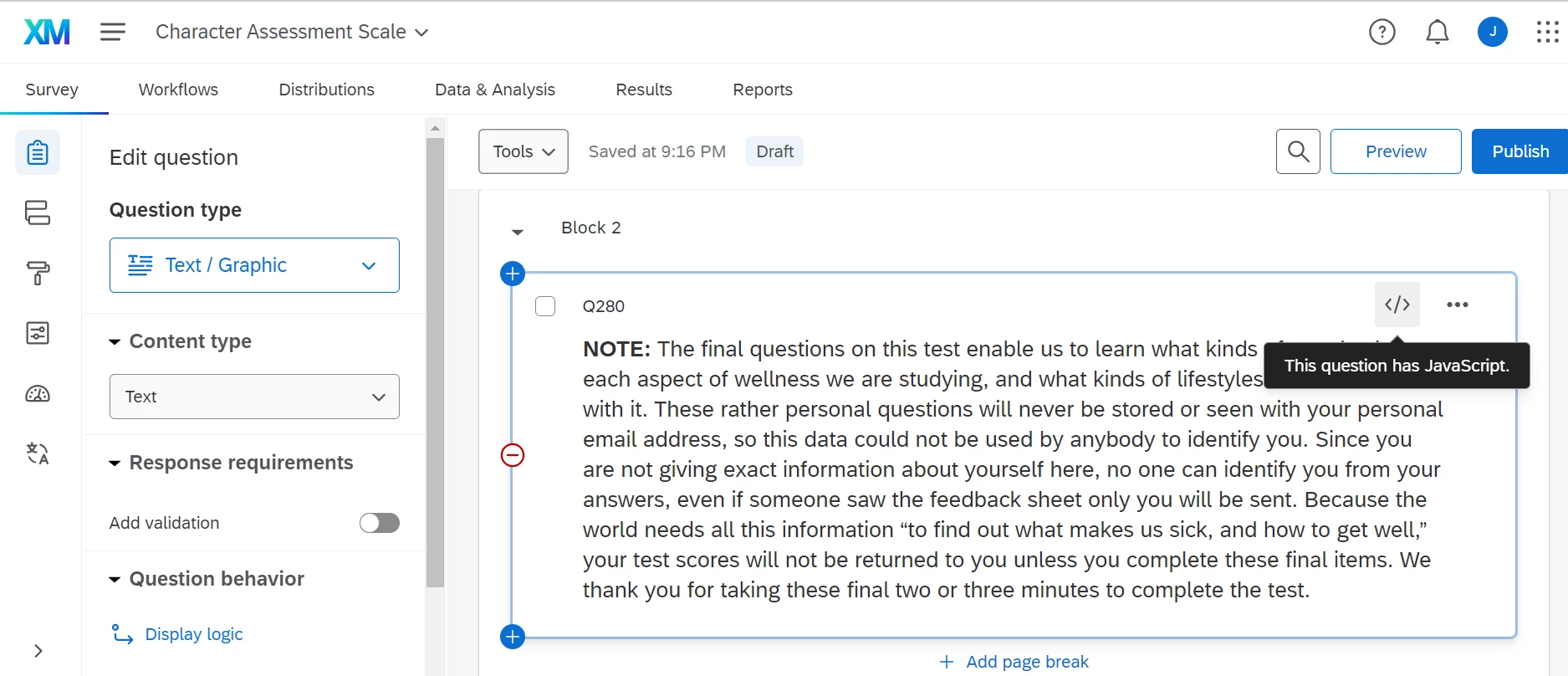 Kindly find in attachment the survey flow and the question that has Javascript code.