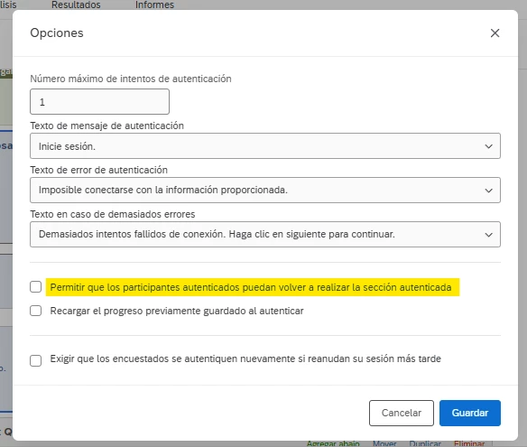 Edit: the English name is Allow authenticating respondents to retake authenticated section.