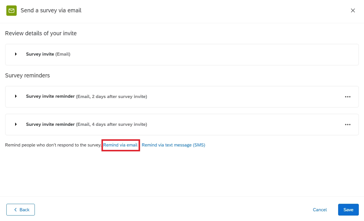 Is there a way we can automate this reminder through Qualtrics? I see that there is SMS option, but if you start a survey via email, can you set up a reminder link via SMS? Any other options out there that could help us make this process more efficient for our study coordinators?