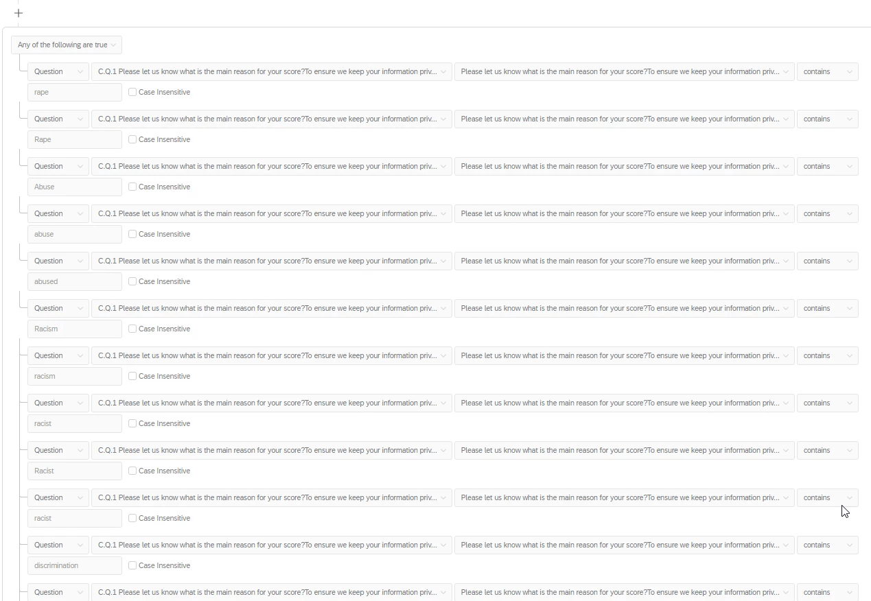 If you review the attached Workflow image, I already have the sensitive keywords setup (ex. abuse, rape, violent, violence, racist, threaten). Nevertheless, my query revolves around the method for configuring the email distribution to route messages directly to my own inbox, as well as to a particular leader.