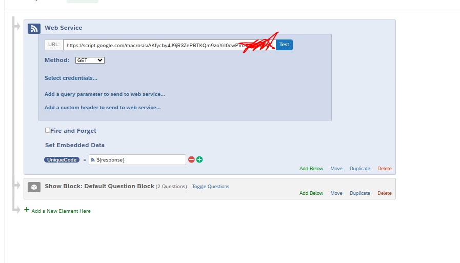 I’m trying to use codes taken in from GoogleSheets through WebService in my survey (as form a one-time reward for participants).