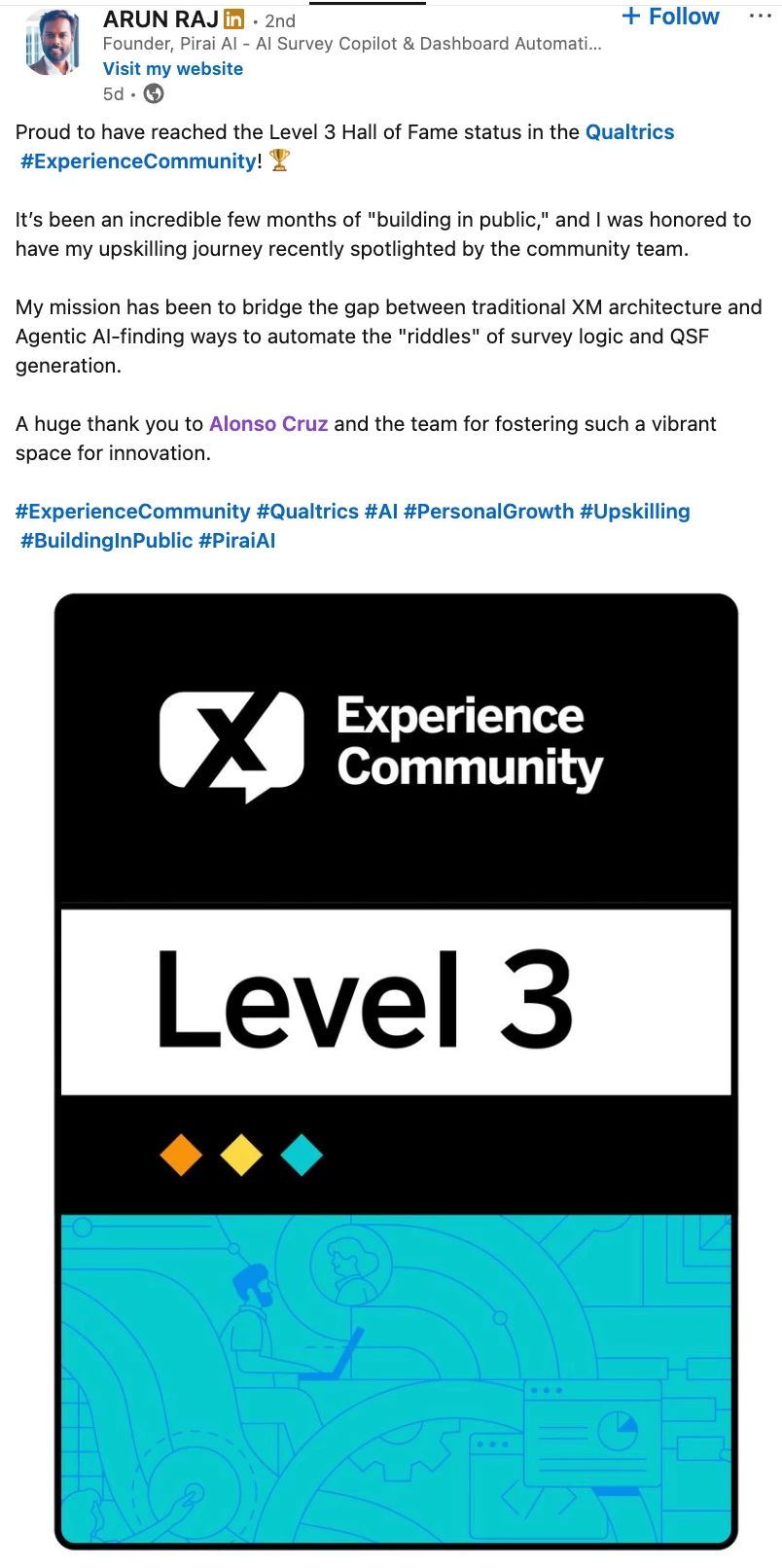 Show the World What You're Capable Of! Share your Qualtrics journey and bring the community along for the ride. Congrats to