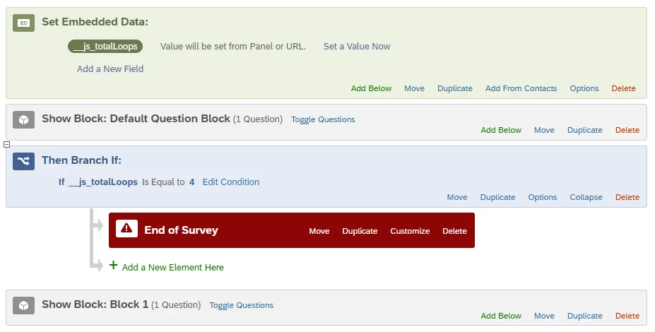 I’m trying to implement a reusable comprehension-check pattern in Qualtrics: allow up to N attempts on the same question, track the number of attempts, and screen out after N failures. I’m seeing inconsistent behavior and I’m not sure what’s the problem.