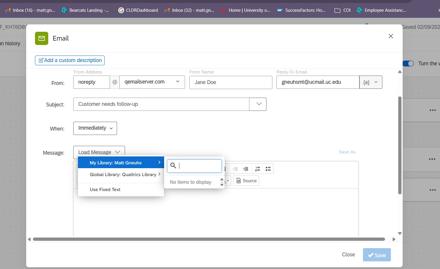 I have a bunch of messages in my Library but I can’t seem to access them when creating an email in my workflows.